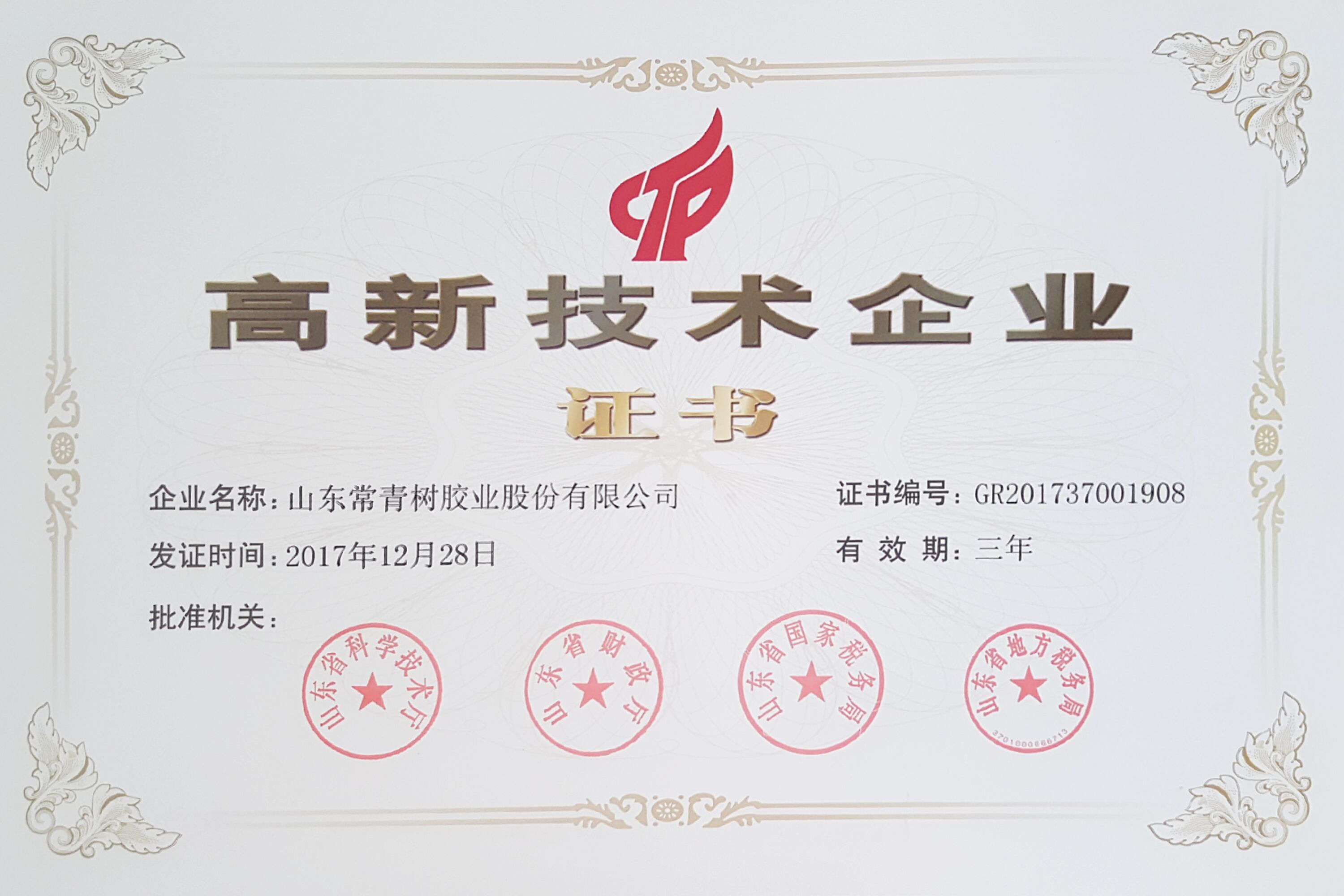 荣誉认证 - 关于常青树 - 关于我们 - 常青树胶业股份有限公司